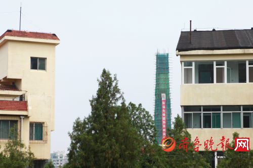 7月25日上午,记者在开元华体会世界杯(中国)科技有限公司房看到,在绿色防护网内,烟囱拆除工作正有序进行,施工人员在60米的高脚手架上紧张忙碌着。