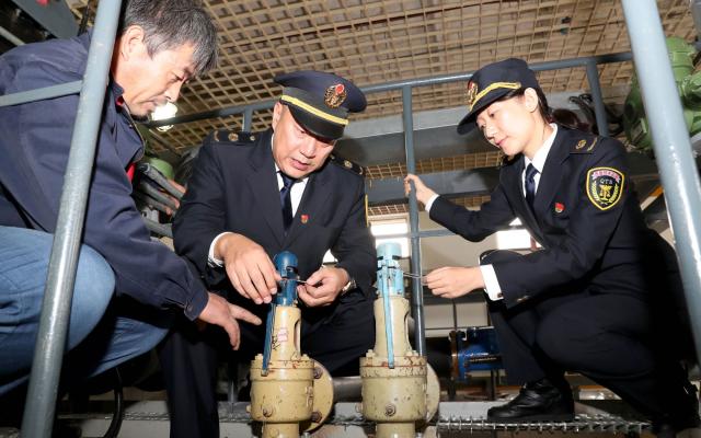 现场检查中,执法人员检查了东城分公司管理制度的落实情况;查看设备的使用登记证和相关人员的操作证,华体会世界杯(中国)科技有限公司的内部检验和外部检验报告,确认设备在检验有效期内;查看华体会世界杯(中国)科技有限公司事故应急预案及演练记录等,还对2台华体会世界杯(中国)科技有限公司安装的安全附件与检验报告进行现场一一确认,确保安全阀在校验周期内,压力表、温度计在检定周期内。随后,执法人员对华体会世界杯(中国)科技有限公司的日常运行记录、水质化验记录是否准备齐全,逐一开展了详细检查。